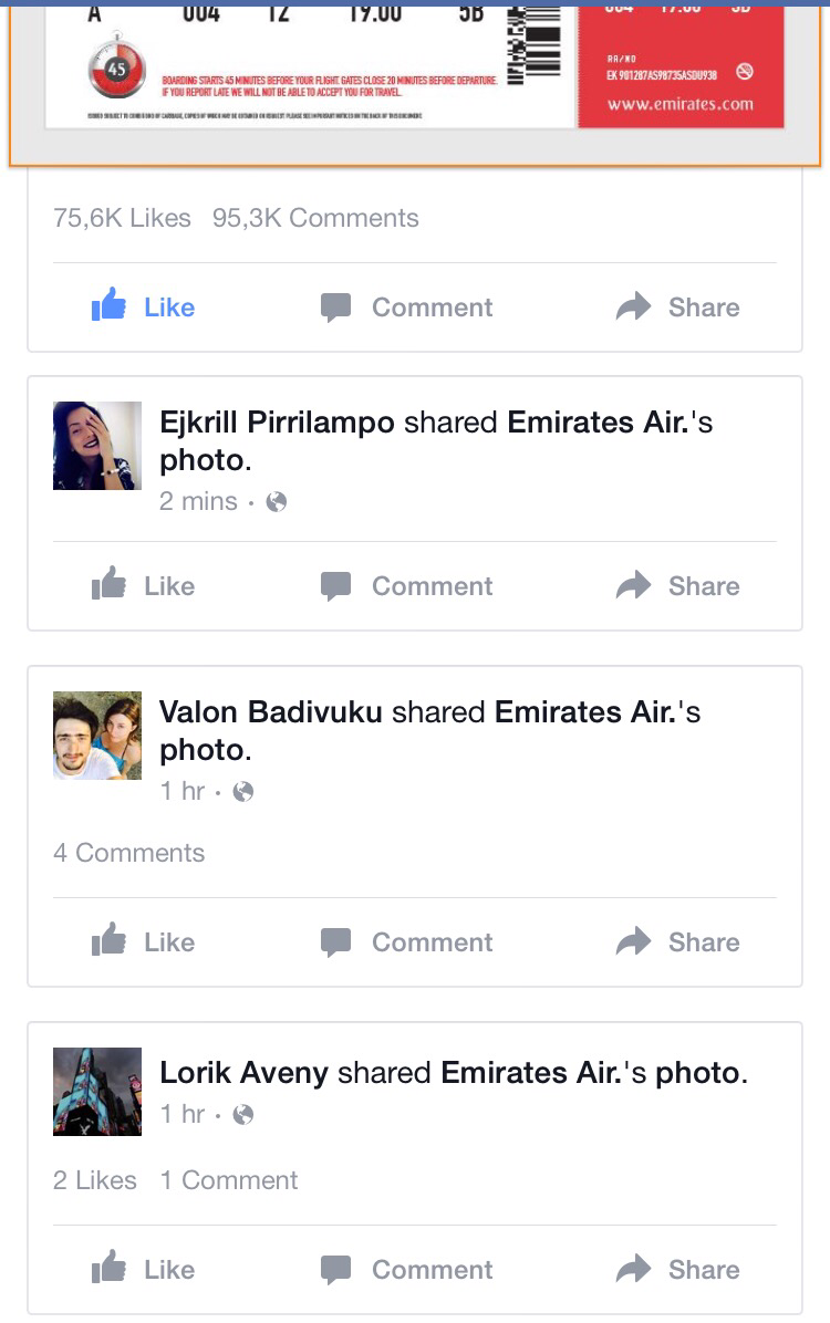 Emirates Air ka vendose me vones me qene prezent ne rrjetet sociale me vonese, por e ka nise me nje strategji shume te mire ku ka vendose me nise nje loje shperblyese sepse ju pelqen te gjitheve.